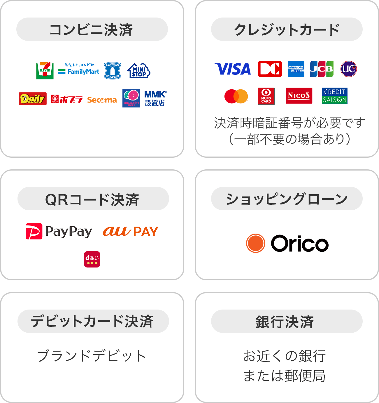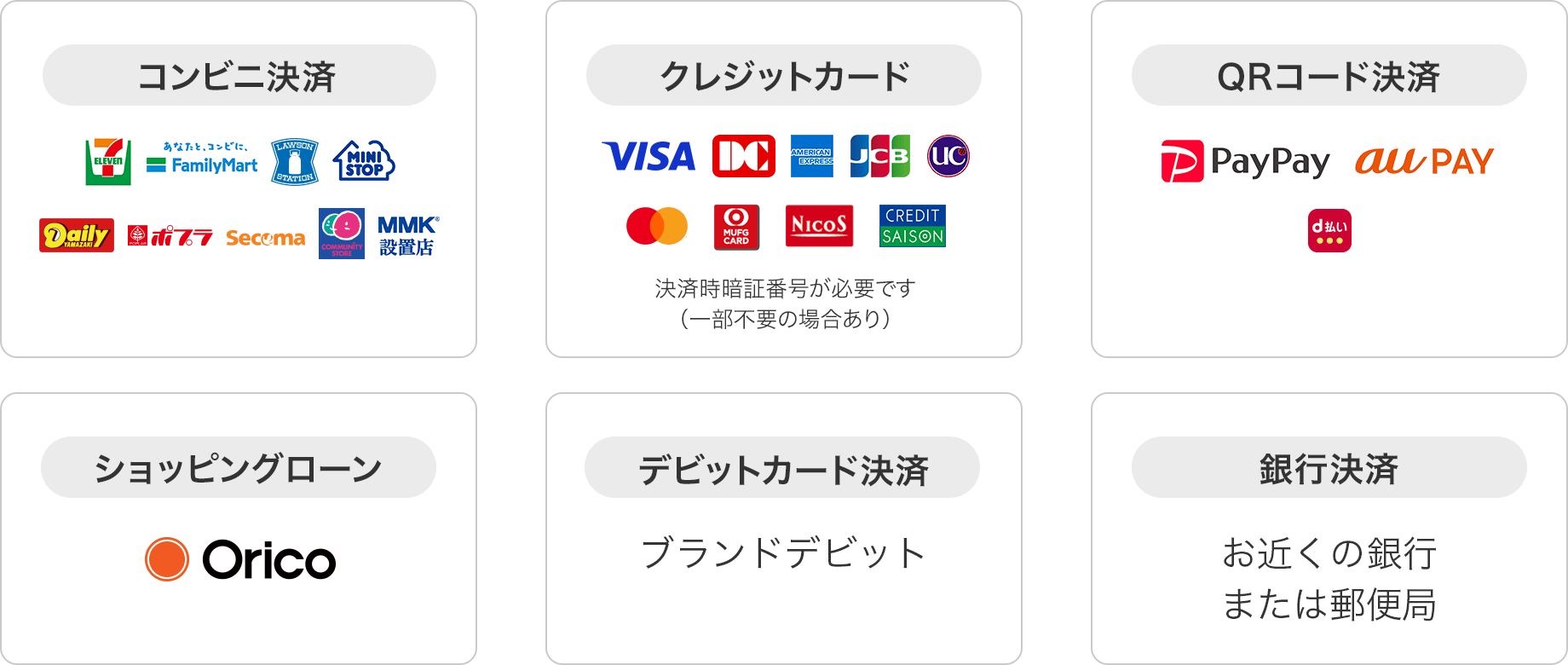 決済など豊富な決済方法