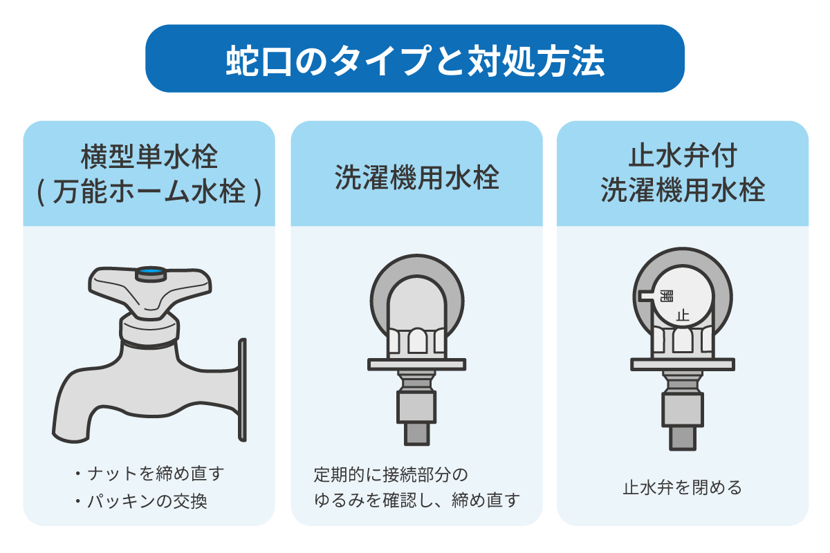 給水ホースと蛇口を3本ねじでつないでいるタイプは、そのねじ部から水漏れが発生します。