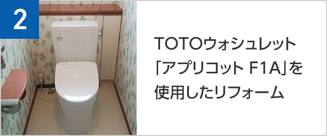 ウォシュレットの故障をきっかけにトイレリフォームのご相談をいただきました。新しい温水洗浄便座には、手入れが楽で、除菌機能が付いたアプリコットシリーズをお選びいただきました。