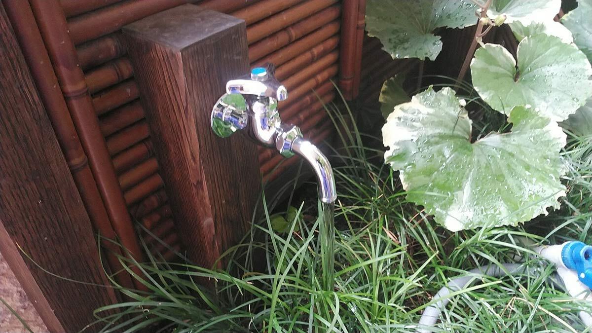 水が止まらなくなっていた屋外のデザイン蛇口を新品に交換