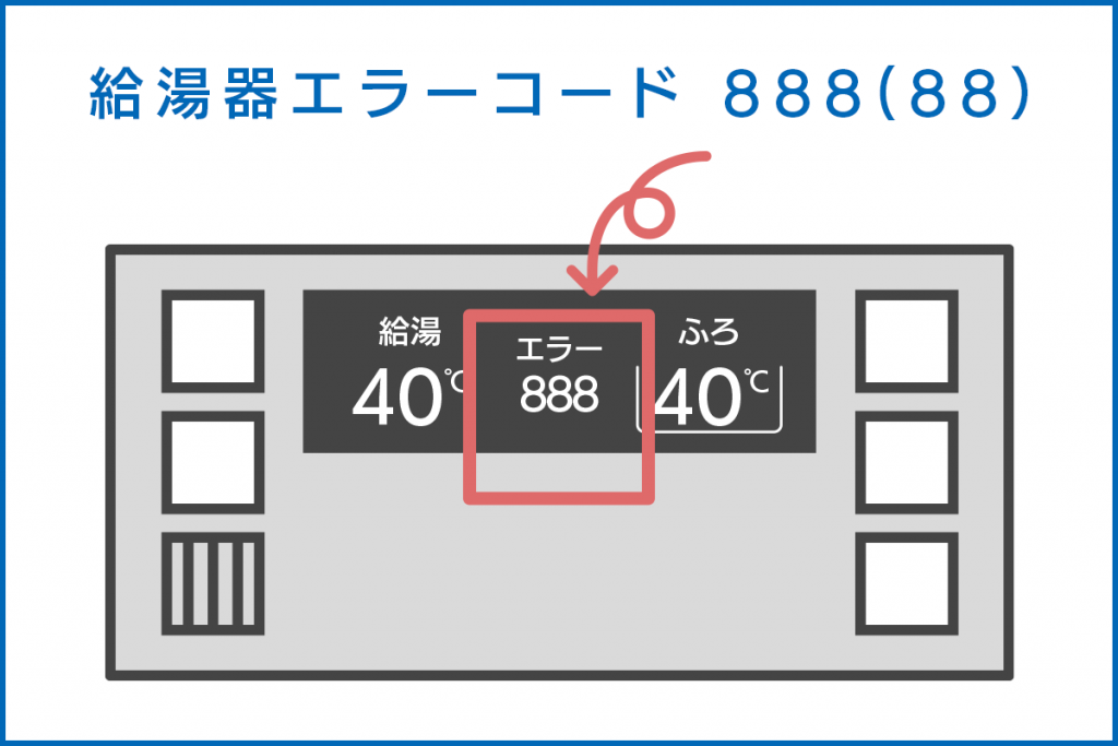 エラーコード888(88)は、給湯器の使用を開始してから約10年(燃焼時間3,600時間)が経過した際に表示されます。