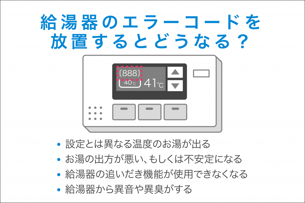 そのため、給湯器の使用から約10年が経過したタイミングでエラーコード888(88)を表示させ、使用者に点検を呼びかけています。