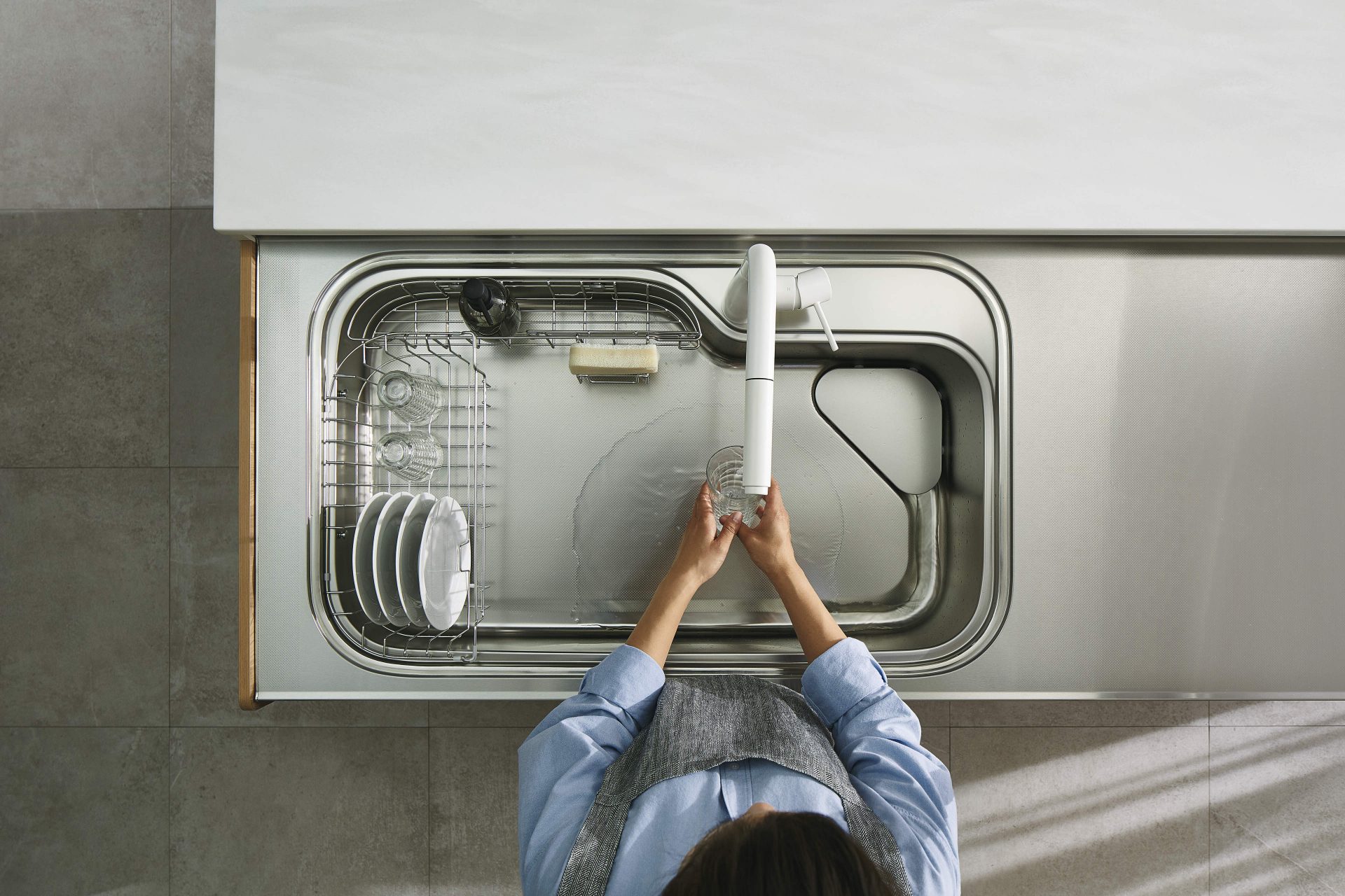 TOTOのミッテは、毎日のキッチンワークを軽やかにしてくれるシステムキッチン。手早く洗えて節水効果抜群のシャワー水栓や、いつも使うモノにすぐ手が届く収納など、作業効率をアップさせてくれます。必要なアイテムを選んで自分らしいスタイルを楽しんでください。