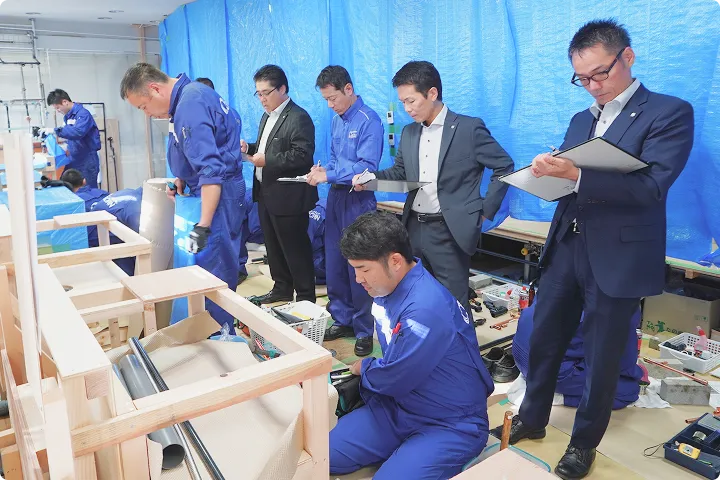 困りごとを熟知した上での提案力には自信があります。複数のメーカーから使い勝手の良い理想の水まわり空間を、お客様に合わせてご提案させていただきます。またスタッフは3ヶ月間の徹底した研修を受けております。座学と実技研修に加え、お客様対応への同行研修も行うことで、常に高い施工品質を担保しています。